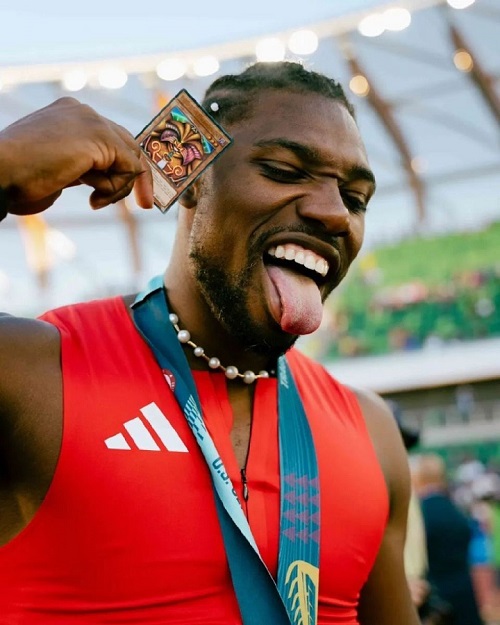 但如果我说,有这样一位田径运动员,在赛前对着奥运会转播摄像头表示着自己对《游戏王》和《咒术回战》等作品的热爱,有所耳闻的观众老爷应该知道是谁,但我想也有些朋友不认识……2024年巴黎奥运会田径男子100米冠军,美国现役田径短跑运动员,诺亚·莱尔斯(Noah Lyles)。